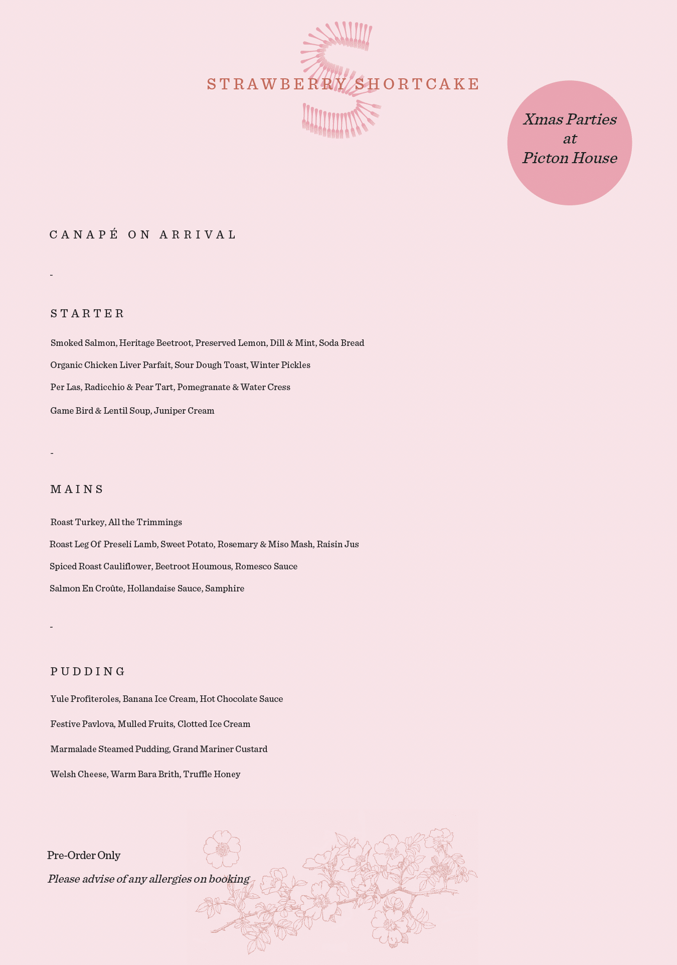 As well as canapés on arrival, your guests can choose from our delicious Christmas Menu: